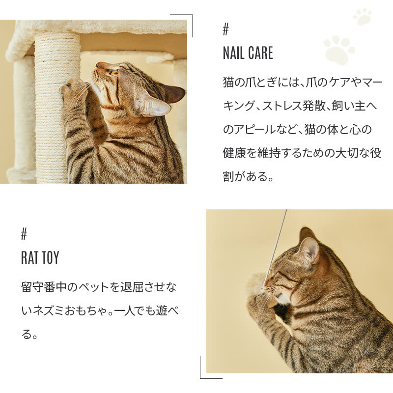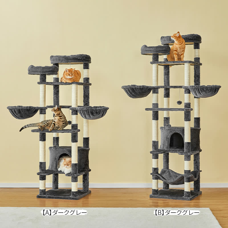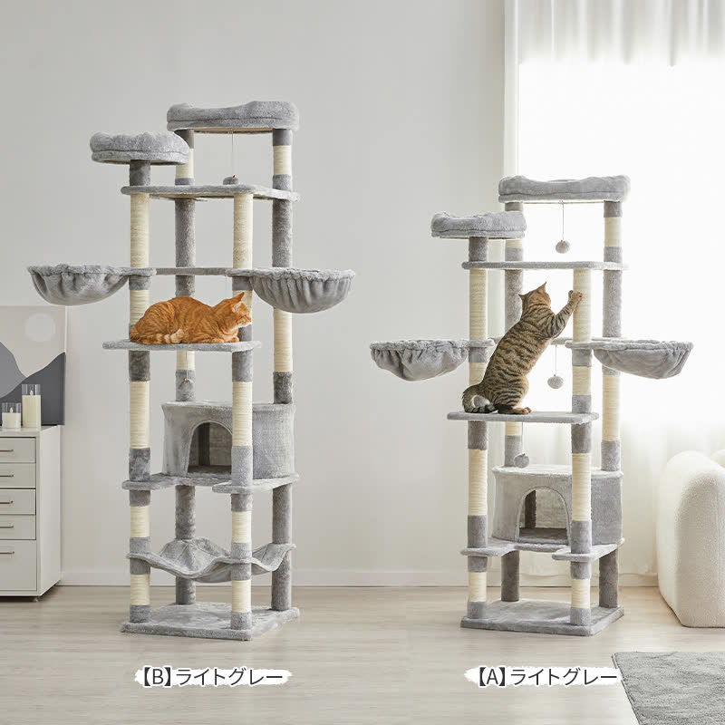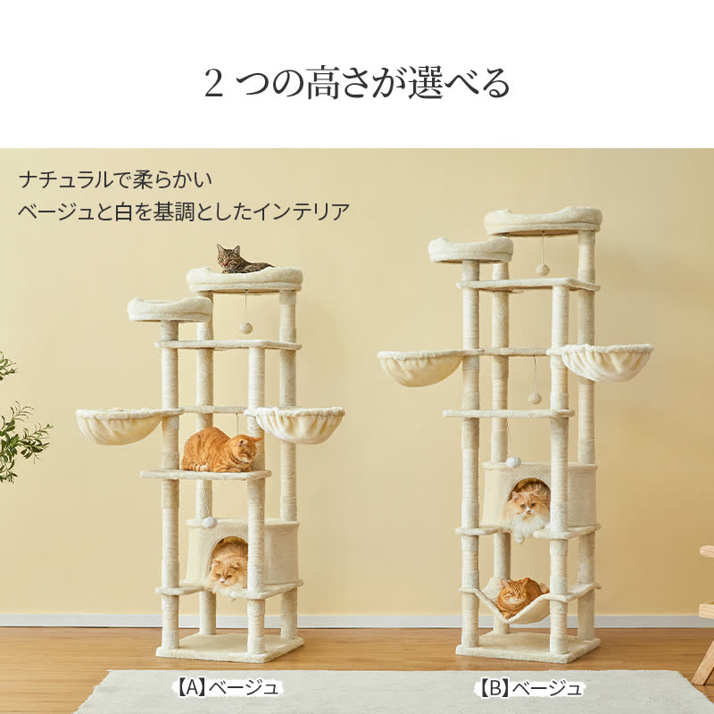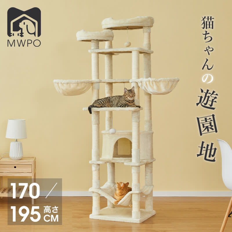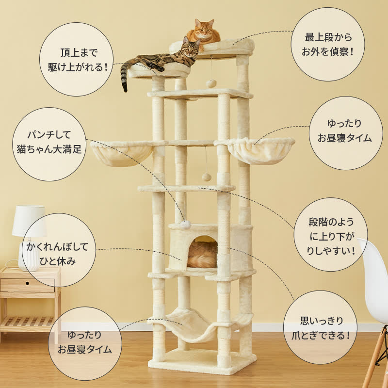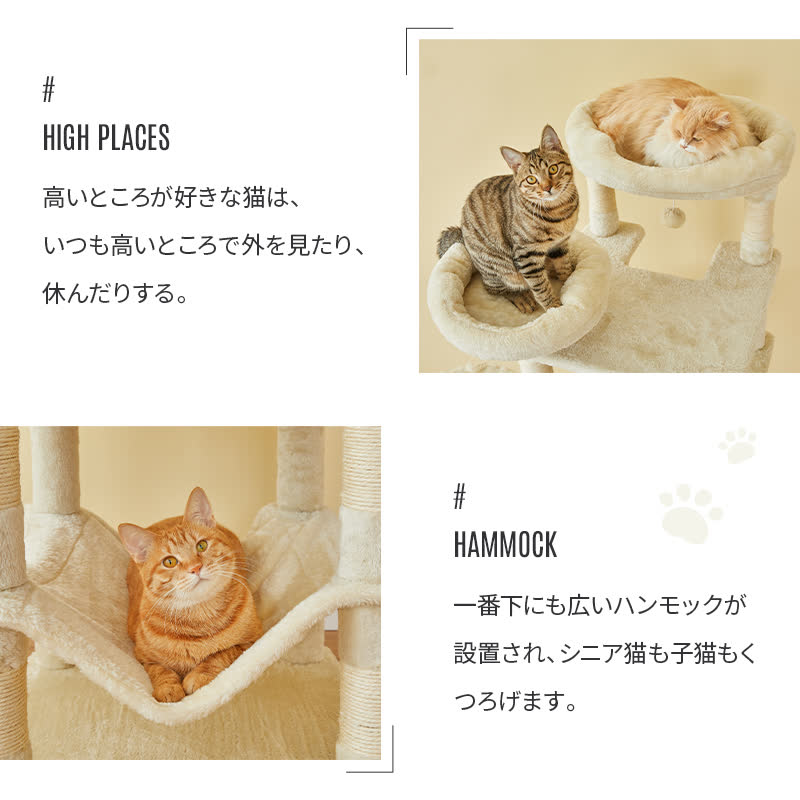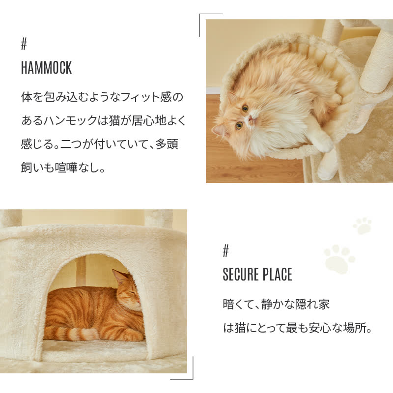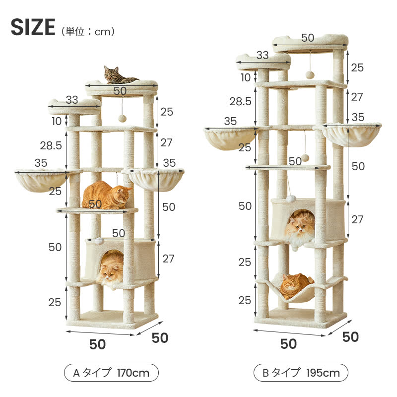 🐾【コンパクト&多機能性】本体サイズは全幅50×全奥50×全高195cmなので、ものすごく省ベースです。ベッド・ハンモック・ハウスなど主要な機能も揃っている、愛猫は思う存分遊ぶことができます。