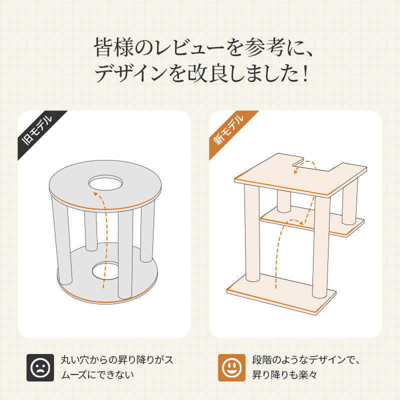 🐾【ストレス解消】スリム構造はそのままで猫の動線を確保するデザインです。ジグザグの動線が確保されているので登りやすいです。